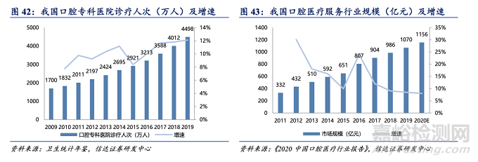 口腔醫(yī)療健康關(guān)注度提升,就診人次攀升。隨著居民飲食習(xí)慣的變化以及對(duì)美的追求,口腔醫(yī)療健康管理受到越來(lái)越多的重視,同時(shí)受益于消費(fèi)水平的上升以及健康意識(shí)的提升,口腔醫(yī)療服務(wù)行業(yè)迎來(lái)了快速發(fā)展。根據(jù)衛(wèi)生統(tǒng)計(jì)年鑒,2019 年我國(guó)口腔??漆t(yī)院就診人次達(dá)到 4498 萬(wàn)人次,同比增長(zhǎng) 12%,近幾年保持在較為穩(wěn)定的增速水平,2009-2019 年CAGR 為 10%。2020 年中國(guó)口腔醫(yī)療服務(wù)行業(yè)規(guī)模將達(dá)到 1156 億元。根據(jù)《2020 中國(guó)口腔醫(yī)療行業(yè)報(bào) 告》,2011-2019 年,我國(guó)口腔醫(yī)療服務(wù)行業(yè)規(guī)模從 332 億元增長(zhǎng)到 1070 億元,CAGR 約為 16%;盡管受到新冠疫情影響,2020 年中國(guó)口腔醫(yī)療服務(wù)行業(yè)仍將比上年增長(zhǎng) 8%左右,行業(yè)規(guī)模將達(dá)到 1156 億元。相關(guān)優(yōu)質(zhì)的民營(yíng)口腔醫(yī)院有望享受到行業(yè)增長(zhǎng)的紅利。