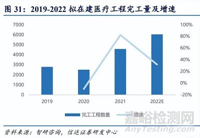 2021-2025 千縣工程計(jì)劃推動(dòng)縣級(jí)醫(yī)院能力建設(shè)。2021 年 11 月,國(guó)家衛(wèi)生健康委印發(fā)《“千 縣工程”縣醫(yī)院綜合能力提升工作方案(2021-2025 年),提出要建設(shè)臨床服務(wù)“五大中 心”、持續(xù)改善縣級(jí)醫(yī)院硬件條件、組建縣域醫(yī)療資源共享“五大中心”,對(duì)縣級(jí)醫(yī)院醫(yī)療 器械升級(jí)提出了要求,有望增加醫(yī)學(xué)影像、微創(chuàng)治療、麻醉鎮(zhèn)痛、重癥監(jiān)護(hù)、消毒、體外 診斷等相關(guān)醫(yī)療器械的市場(chǎng)需求。醫(yī)療新基建拉動(dòng)醫(yī)療設(shè)備市場(chǎng)長(zhǎng)期擴(kuò)容。2021 年以來(lái),醫(yī)療投入大幅增加,以大型公立 醫(yī)院擴(kuò)容為主導(dǎo)的醫(yī)療新基建已經(jīng)開(kāi)始,醫(yī)療新基建項(xiàng)目從包括北上廣深在內(nèi)的大城市逐 漸拓展到其他城市。2021 年 12 月,國(guó)家財(cái)政部發(fā)布多則關(guān)于提前下達(dá) 2022 年補(bǔ)助資金 預(yù)算的通知,新一年的醫(yī)療市場(chǎng)建設(shè)與擴(kuò)容也已提上日程。后疫情時(shí)代,醫(yī)療新基建正如 火如荼展開(kāi)。