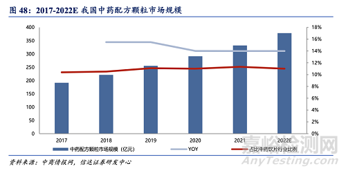 量?jī)r(jià)齊升邏輯下,配方顆粒市場(chǎng)規(guī)模具備數(shù)倍擴(kuò)容潛力。與中藥飲片相比,中藥配方顆粒具有安全、有效、方便、質(zhì)量穩(wěn)定可控等優(yōu)點(diǎn),經(jīng)過(guò)國(guó)家長(zhǎng)期政策引導(dǎo)與扶持,中國(guó)中藥配方顆粒行業(yè)逐漸走向規(guī)范化,2021 年 11 月試點(diǎn)工作結(jié)束,生產(chǎn)與銷售限制放開(kāi),行業(yè) 迎來(lái)廣闊發(fā)展空間。從醫(yī)保端來(lái)看:我們認(rèn)為隨著國(guó)標(biāo)實(shí)行、配方顆粒進(jìn)入省級(jí)平臺(tái)掛網(wǎng), 未來(lái)將有更多省份把中藥配方顆粒納入省級(jí)醫(yī)保,最終有望納入國(guó)家醫(yī)保體系,醫(yī)保覆蓋范圍的拓寬有利于增強(qiáng)終端支付能力。從需求端來(lái)看,銷售范圍拓寬至基層終端市場(chǎng),更加迎合中藥日常消費(fèi)習(xí)慣,有利于推動(dòng)配方顆粒市場(chǎng)擴(kuò)容。2022 年企業(yè)舊標(biāo)配方顆粒產(chǎn)品庫(kù)存逐漸出清,標(biāo)準(zhǔn)的切換也給企業(yè)形成新的價(jià)格體系提供良好契機(jī),我們預(yù)計(jì)各企業(yè)或?qū)⑸险{(diào)出廠價(jià)格,以緩解上游藥材成本上漲與單位用量提升壓力。