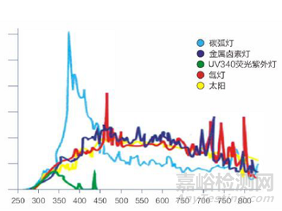 氙燈老化試驗(yàn)被認(rèn)為是目前模擬性最好的一種人工氣候老化試驗(yàn)方法。可用于新材料的選擇、改進(jìn)現(xiàn)有材料或評(píng)估材料組成后耐用性的變化測(cè)試,可為產(chǎn)品研發(fā)、質(zhì)量控制和材料篩選提供相應(yīng)的模擬測(cè)試環(huán)境和加速測(cè)試,能充分模擬在不同條件下,材料暴露在陽光下所產(chǎn)生的變化。氙燈試驗(yàn)光源在紫外區(qū)和可見光區(qū)的光譜能量分布與太陽光的光譜能量分布近似(見圖1),氙燈發(fā)出的輻射經(jīng)過濾光器,過濾掉波長(zhǎng)290nm以下較短的紫外光波和波長(zhǎng)1200nm以上的紅外光波,使到達(dá)試樣表面的光譜接近太陽光譜(見圖2)。