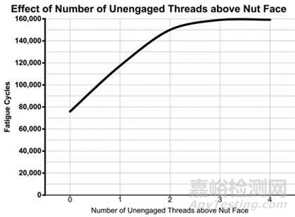 測試表明螺母端面距離起螺紋位置越近,就會導(dǎo)致螺栓的越早失效。這是因?yàn)槁菟ㄆ鹇菁y的位置通常來說都是滾制最為粗糙的地方,存在更大的應(yīng)力集中。螺栓副的第一扣螺紋是應(yīng)力最為集中的,讓這第一扣螺紋靠近起螺紋的位置,會導(dǎo)致疲勞強(qiáng)度的下降。所以,讓螺栓副的第一扣與起螺紋的地方有個2扣以上螺距的距離,會消除這個隱患。
