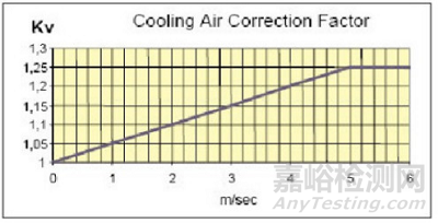 Kv:風冷修正系數(shù),熔斷器采用自燃對流冷卻,參照圖八風冷修正系數(shù)曲線圖,沒有采取額外散熱處理,取Kv=1;