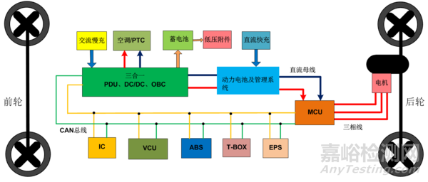 現(xiàn)階段動力電池能量密度越來越高,單體電芯容量越來越大,各高壓部件一旦出現(xiàn)短路現(xiàn)象而無相應的保護措施,輕則部件損壞,重則引起火災(尤其動力電池),后果將不堪設想,所以各高壓部件回路的保護至關重要,本文將闡述純電動汽車高壓直流熔斷器計算及選型方法,并實例說明。電動汽車電氣拓撲圖如圖一所示。