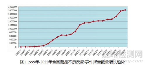 2022年全國藥品不良反應(yīng)監(jiān)測網(wǎng)絡(luò)收到《藥品不良反應(yīng)事件報告表》22.3萬份。1999年至2022年,全國藥品不良反應(yīng)監(jiān)測網(wǎng)絡(luò)累收到《藥品不良反應(yīng)/事件報告表》2,085.6萬份(圖1)。