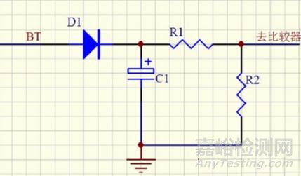 可以看出這個(gè)電路由于加入了D1、C1能夠使電池取樣電壓快速建立,延時(shí)保護(hù)。
