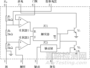 圖2為555集成時(shí)基電路的基本框圖。