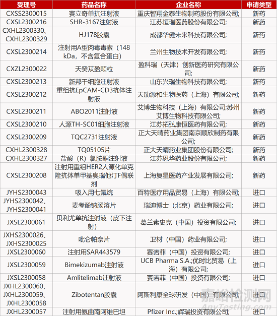 1. CDE新藥受理情況(03月25日)
