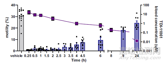 圖5. TDI-11861對(duì)精子運(yùn)動(dòng)的抑制與藥理學(xué)相關(guān)