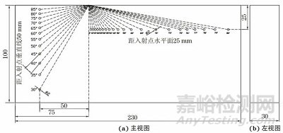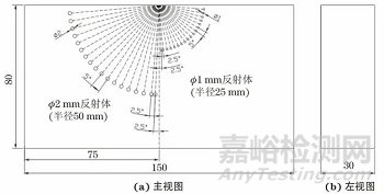 圖4 聲程恒定式偏轉(zhuǎn)試塊結(jié)構(gòu)及反射體信息