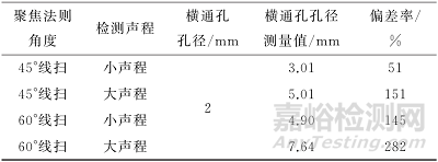 表4 不同角度、不同聲程下的橫通孔高度測(cè)量值