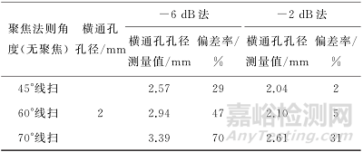 在實(shí)際檢測(cè)過程中發(fā)現(xiàn),使用第1章所述方法進(jìn)行測(cè)量得到的測(cè)量值與缺陷實(shí)際尺寸有著較大的偏差,通常比實(shí)際尺寸偏大,并且不同聚焦法則下的偏差程度不一致。