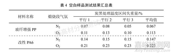 本文中改性 PA6 材料炭黑測(cè)試使用400℃,玻纖增強(qiáng) PP 使用500℃;