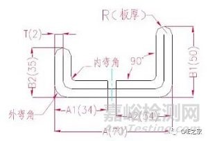 展開長度:L1=(A1-T)+(B2-T)-P1即L1=(35-2)+(34-2)-3.7=61.3