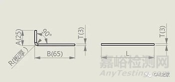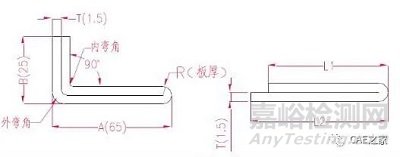 T-—材料厚度展開長度L=A+B-P’即L=25+65-1=89