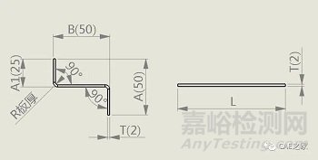 T--材料厚度展開長度L=A+T+B-2xP’即L=50+2+50-2×3.4=95.6