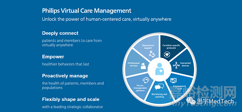飛利浦表示,其虛擬護理產(chǎn)品組合“超越了傳統(tǒng)的遠程患者管理”。其提供的可擴展的解決方案和服務,有助于提高患者參與度,強化更健康的行為,并擴大患者獲得護理的機會,整體改善護理結(jié)果,并降低醫(yī)療成本。