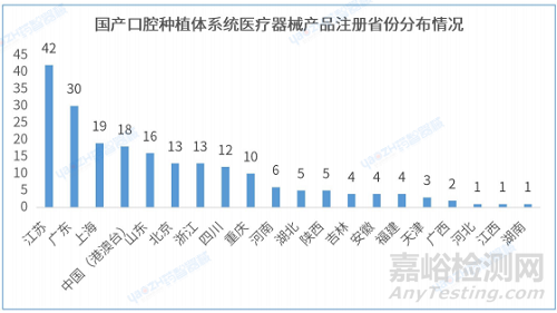 2.3 國產(chǎn)口腔種植體系統(tǒng)醫(yī)療器械產(chǎn)品注冊省份分布情況