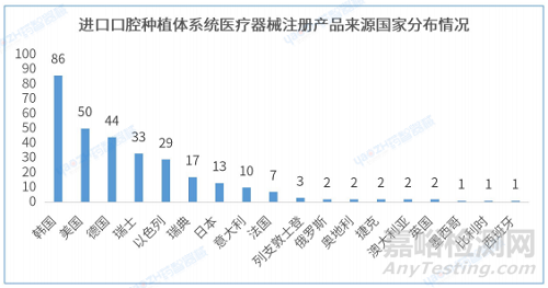 2.5 進口口腔種植體系統(tǒng)醫(yī)療器械注冊產(chǎn)品來源國家分布情況