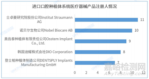 2.6 進口口腔種植體系統(tǒng)醫(yī)療器械產(chǎn)品注冊人情況(top5)
