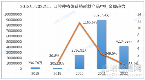 4.1 2018-2022年,口腔種植體系統(tǒng)耗材產(chǎn)品中標金額趨勢