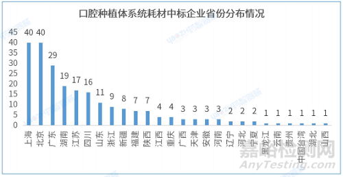 4.3 口腔種植體系統(tǒng)耗材中標企業(yè)省份分布情況