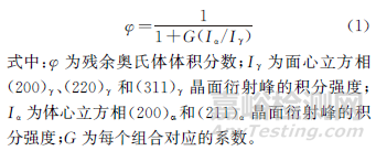 在經(jīng)Q&P處理的試樣上切取表面尺寸為6mm×8mm的金相試樣,經(jīng)研磨拋光,采用體積分數(shù)4%硝酸酒精溶液浸蝕10s后,通過SEM觀察顯微組織。另取相同尺寸的金相試樣,研磨后用體積分數(shù)5%高氯酸乙醇溶液電解拋光以去除殘余應(yīng)力,電壓為28V,電流為0.6A,時間為30s,使用電子背散射衍射儀(EBSD)進行相分析。使用X射線衍射分析儀(XRD)測定殘余奧氏體體積分數(shù)。殘余奧氏體體積分數(shù)計算公式如下: