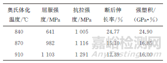 表1 不同溫度奧氏體化+Q&P處理后試驗鋼的拉伸性能