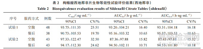 三、枸櫞酸西地那非片在中國的生物等效性試驗評價結(jié)果分析