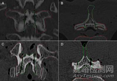 本次實(shí)驗(yàn)使用來(lái)自4具尸體的7塊椎骨,隨機(jī)選擇每具尸體3塊胸椎和1塊腰椎。實(shí)驗(yàn)人員在手術(shù)前根據(jù)計(jì)算機(jī)斷層掃描(CT)數(shù)據(jù)規(guī)劃椎板切除路徑。機(jī)器人自主進(jìn)行椎板切除術(shù),并進(jìn)行術(shù)后CT掃描。定量分析各切割平面與方案的偏差,定性評(píng)價(jià)其準(zhǔn)確性、安全性和切割效率。