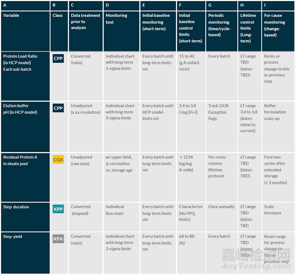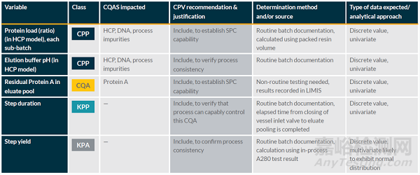 表1. 蛋白A親和層析步驟的持續(xù)工藝確認(rèn)的監(jiān)控項(xiàng)目