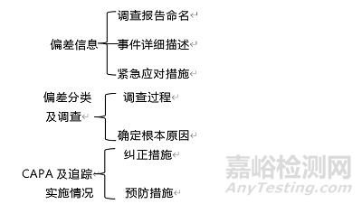 偏差信息通常包括:調(diào)查報(bào)告命名、事件詳細(xì)描述和緊急應(yīng)對(duì)措施。