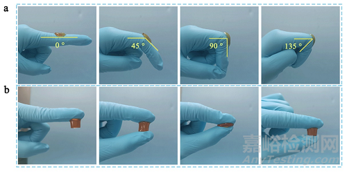 該水凝膠敷料還有非常強的變形能力,能夠隨著手指或機體的變形而發(fā)生形變。在擠壓之后也能恢復(fù)到初始狀態(tài)。