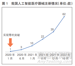 2020年1月,科亞醫(yī)療科技股份有限公司的冠脈血流儲(chǔ)備分?jǐn)?shù)計(jì)算軟件獲批上市,標(biāo)志著我國人工智能醫(yī)療器械產(chǎn)業(yè)開啟商用篇章(詳見圖1)。近兩年,隨著監(jiān)管路徑逐漸清晰以及產(chǎn)業(yè)發(fā)展逐步成熟,人工智能醫(yī)療器械取得注冊證的步伐加快。截至2022年6月底,我國已有47款人工智能醫(yī)療器械獲批上市,覆蓋心血管、腦部、眼部、肺部、骨科、腫瘤等疾病領(lǐng)域,預(yù)期用途包括輔助分診與評估、定量計(jì)算、病灶檢測、靶區(qū)勾畫等。