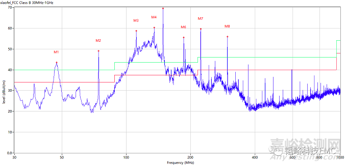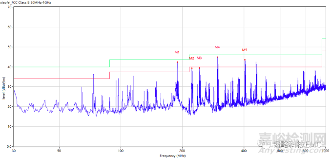 通過(guò)數(shù)據(jù)我們可以看出這款攝像頭輻射超標(biāo),都是一些單支噪聲超標(biāo)跟一個(gè)數(shù)據(jù)大包。這里的這些窄帶單支就是我們機(jī)器上的時(shí)鐘數(shù)據(jù)造成的的。同時(shí)通過(guò)找規(guī)律發(fā)現(xiàn),這里不止一個(gè)時(shí)鐘頻率超標(biāo),存在多個(gè)時(shí)鐘頻率。
