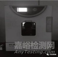試驗(yàn)使用一恒鼓風(fēng)干燥箱BPG-9040A 對(duì)發(fā)泡件進(jìn)行烘烤,來探究溫度和時(shí)間對(duì)發(fā)泡件膨脹程度的影響,如圖4 所示。鼓風(fēng)干燥箱最大加熱溫度200 ℃,加熱時(shí)間可自由設(shè)置。試驗(yàn)前,使用爐溫測(cè)量?jī)x對(duì)烤箱內(nèi)爐溫進(jìn)行測(cè)量,與顯示的實(shí)際值相同。將發(fā)泡件放置在圖5 所示鐵質(zhì)單面開口盒子里,模擬車身內(nèi)發(fā)泡件環(huán)境,防止直接受到熱輻射,影響試驗(yàn)結(jié)果。