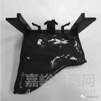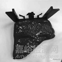 車身發(fā)泡件的厚度為3~6 mm,距離空腔板材的距離為2~3 mm。膨脹體積<5%時(shí),沒有堵塞空腔風(fēng)險(xiǎn),其表面開始出現(xiàn)目視可見小氣泡,但整體平整光滑,將其定義為臨界合格件,如圖6 所示。再加熱膨脹后,表面不再光滑,出現(xiàn)明顯鼓泡。不合格件則充滿氣泡,表面不再平滑,如圖7所示。這些臨界件的界定,最根本的原則是保證膨脹程度不堵塞其所在的空腔。實(shí)際上這些臨界合格件的界定是相對(duì)保守的。