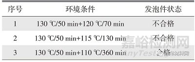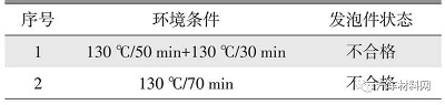 臺(tái)階溫度下,發(fā)泡件的溫度/時(shí)間與發(fā)泡件狀態(tài)具體數(shù)據(jù)見表2。