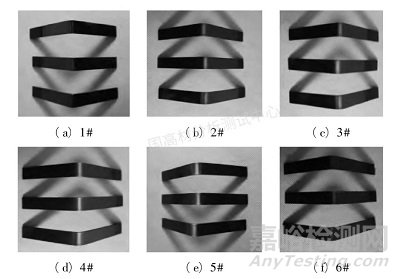 1# ~ 6#配方的彎折發(fā)白樣品見圖 3 。