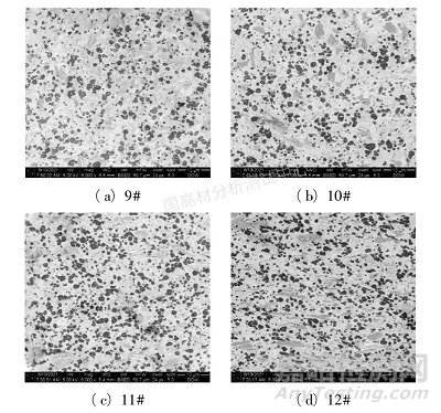 由圖6可以看出:POE在PP基體中分散,其中,10#配方中的 POE 在 PP 中的分散更好; 同一類別的POE,熔融指數(shù)越高,POE 在PP中的分散越好。研究證明,銀紋的引發(fā)和增長對增韌劑的粒子大小有一定的要求,受到外力時,分散更好的增韌劑更容易終止銀紋的生長,可以更好地改善應(yīng)力發(fā)白的問題 。