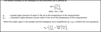 此方法是利用電阻或電容傳感器來測量相對濕度。傳感器通過電容或電阻的變化,并轉化為濕度信號。每次使用前傳感器必須用標準鹽溶液進行校準,水分進入后需要在傳感器里充分平衡,此過程一般需要15分鐘到60分鐘。以下是USP中此方法的計算公式。