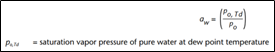 因為水的飽和蒸汽壓在露點溫度等于測量溫度下空氣的水蒸氣壓,因此露點溫度可以用來確定水的蒸汽壓。此方法是經AOAC國際認證的首要的測量水分活度的方法,也是美國USP和FDA推薦方法,能在5分鐘內完成水活度測定。以下是USP中此方法的計算公式。