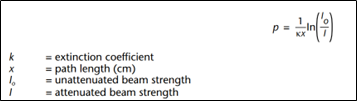 光學吸收法通過水蒸氣對紫外線或紅外光的衰減來測量水蒸氣壓力。樣品的吸光度與蒸汽壓之間的關系由-朗伯比爾公式表示。以下是USP中此方法的計算公式。