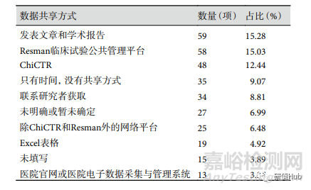 表 3 ChiCTR注冊RWS臨床試驗同意數(shù)據(jù)共享項目共享方式排名前10位