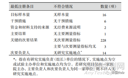 表 5 ChiCTR注冊RWS臨床試驗項目不符合最低注冊要求情況