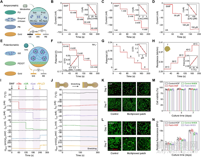 圖 2 用于傷口監(jiān)測(cè)的多模態(tài)傳感器陣列的設(shè)計(jì)和表征