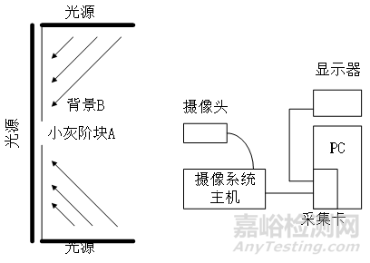 實驗?zāi)P腿鐖D1所示,固定好背景B的亮度和攝像頭的距離,通過改變光源亮度來改變小灰階塊A的亮度,采集不同亮度下的多幅圖像(圖2),按照《YY/T 1603-2018 醫(yī)用內(nèi)窺鏡 內(nèi)窺鏡供給裝置 攝像系統(tǒng)》附錄ABD中方法進行計算。
