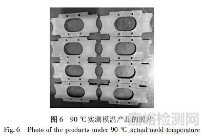 當將油溫機的設置溫度從150℃(實測模溫114℃)降低至120℃(實測模溫90℃)后產品發(fā)白嚴重,如圖6所示。