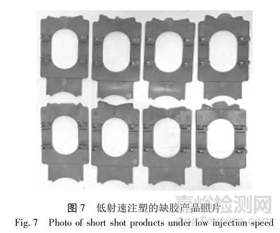 高溫尼龍的結晶溫度一般高達265~280℃,建議采用中高注射速度和中高注射壓力,降低注塑過程中熔體和型腔接觸時間,避免熔體冷卻導致缺膠,如圖7所示。