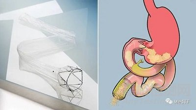 EndoBarrier產(chǎn)品結(jié)構(gòu)非常簡單,由一個(gè)鎳鈦錨固件和氟聚合物制成的60 cm不滲透套管組成,可在內(nèi)鏡下放置于十二指腸中,錨固件通過抓住腸黏膜的小倒鉤固定在十二指腸球部腸壁上,錨固件內(nèi)緣有連接于固定點(diǎn)的細(xì)線,用于以后裝置取出,套管覆蓋全部十二指腸,遠(yuǎn)端可達(dá)空腸近端。EndoBarrier通過對小腸近端的黏膜進(jìn)行內(nèi)襯形成十二指腸空腸旁路,攝入的營養(yǎng)物質(zhì)進(jìn)入胃部后,通過套管進(jìn)入空腸近端;胰液和膽汁自然分泌,在套管和腸壁之間向下流動(dòng),在EndoBarrier遠(yuǎn)端(即空腸)中與食糜混合在一起。