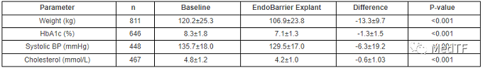接受EndoBarrier治療的患者體重、HbA1c、收縮壓和膽固醇顯示出明顯降低。